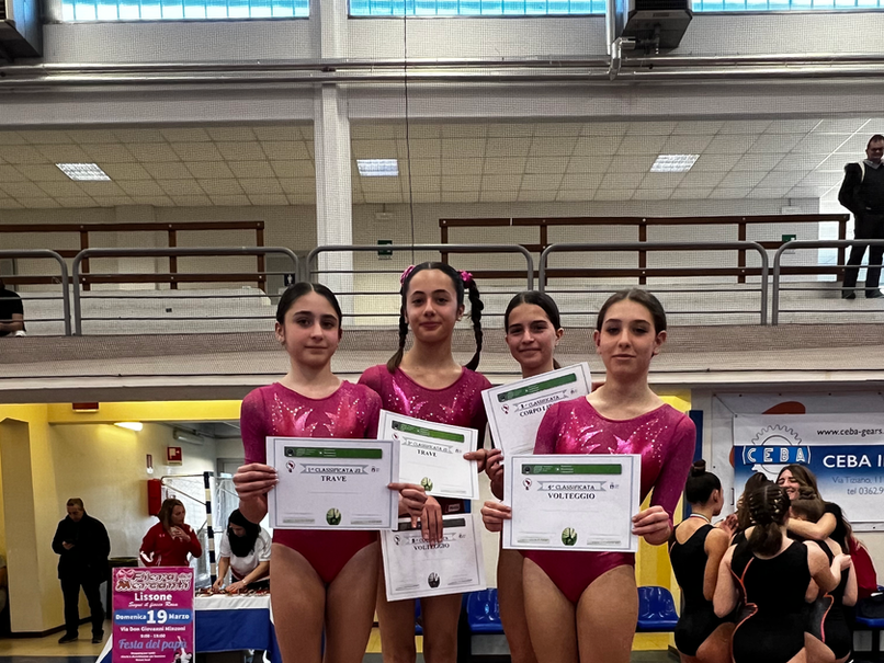 10/12/23 Medaglie di bronzo campionati italiani federali per Matilde Palmerini e Beatrice Zocco, Anna Conte, Ilaria Passoni e Valeria Gatti